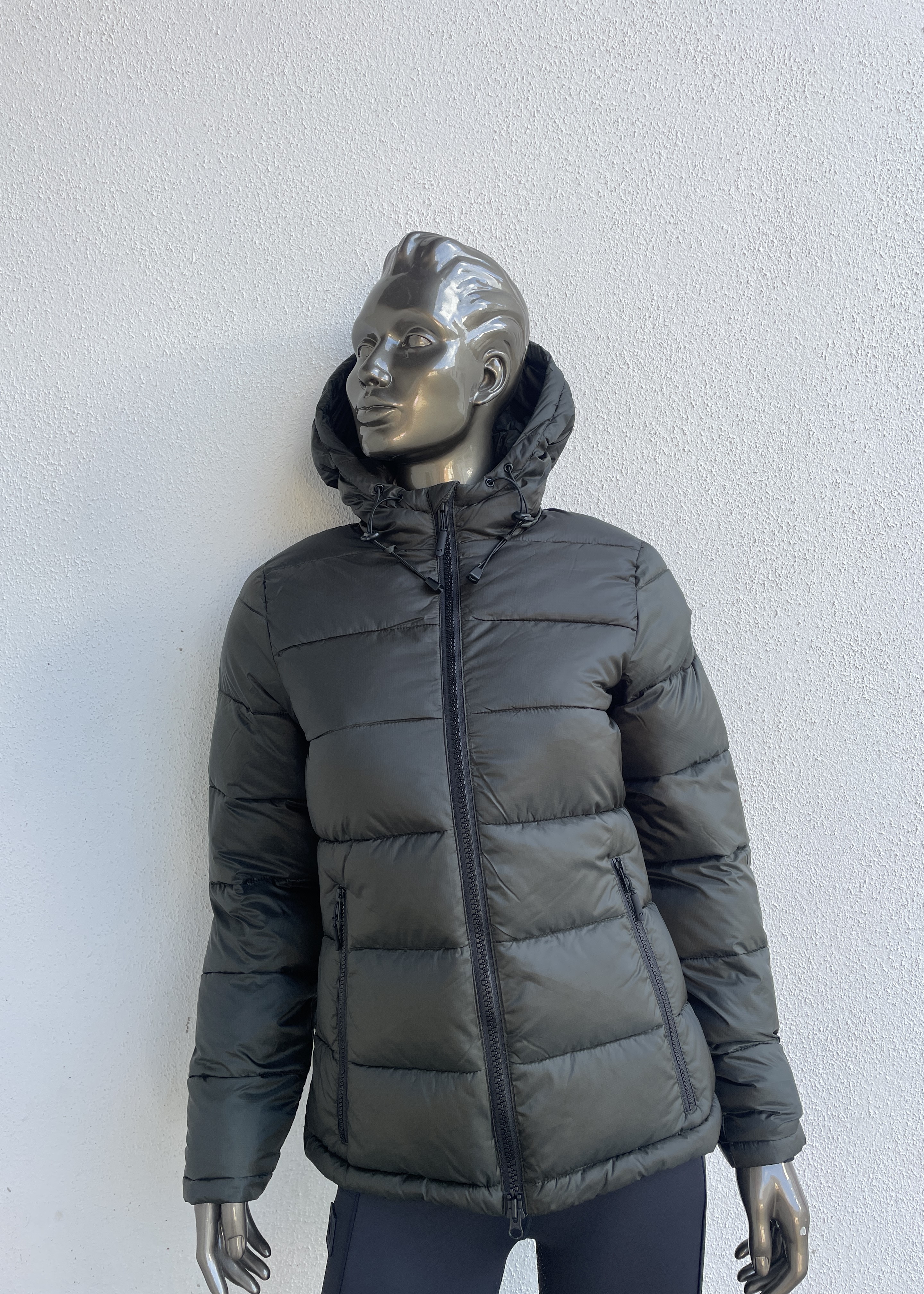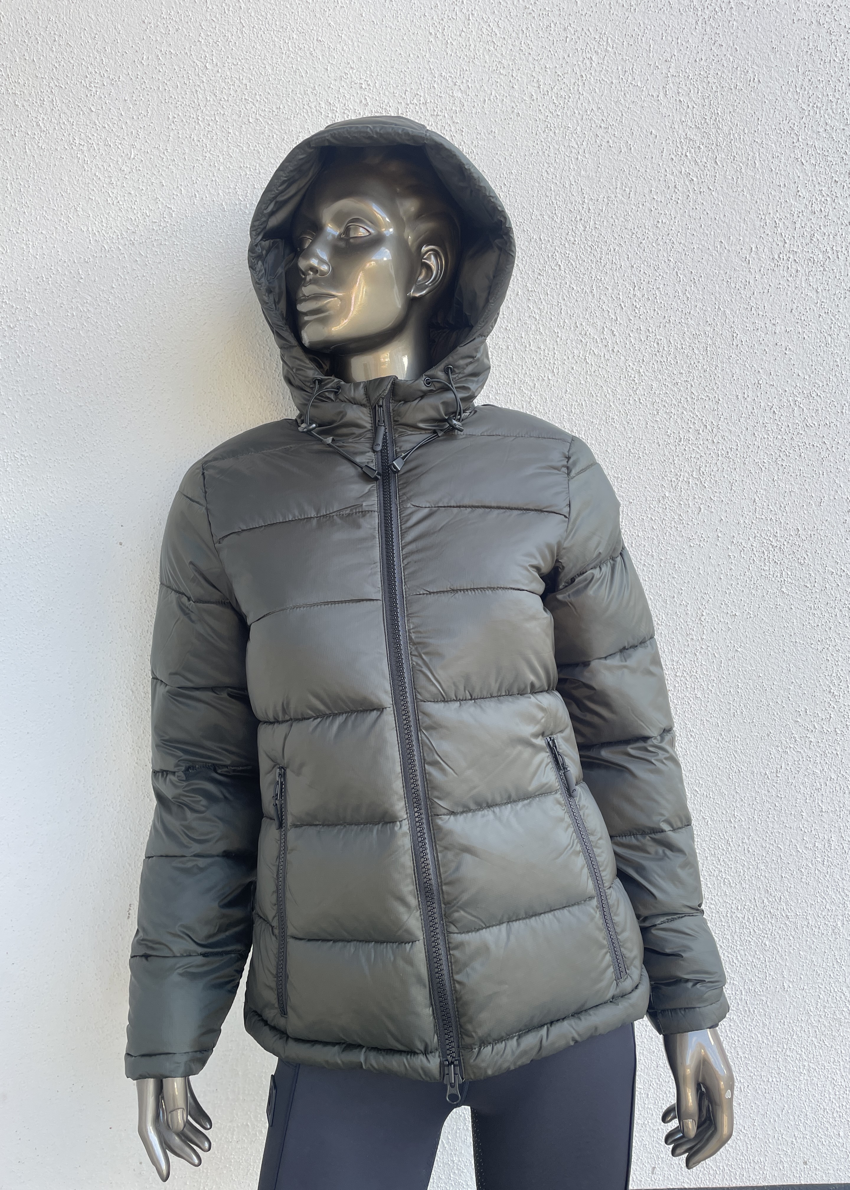 Die hochwertige Wattierung sorgt für kuschelige Wärme, während das pflegeleichte, leicht abwaschbare Material dezent glänzt und der Jacke einen edlen Look verleiht.