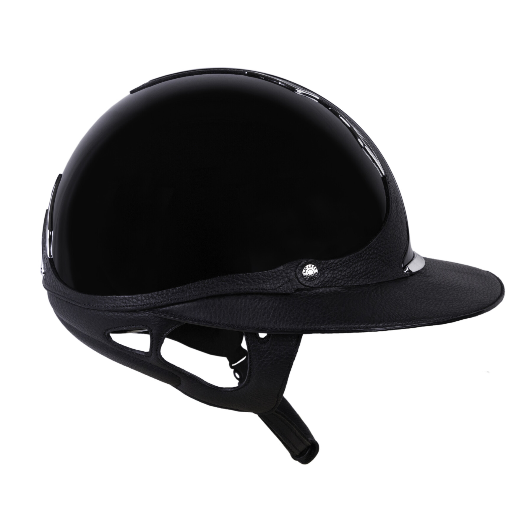 Die Premium Éclipse Kollektion überzeugt mit hochglänzender Oberfläche in fünf eleganten Farben: Blau, Schwarz, Bison, Grau und Carbon. Der Helm kombiniert eine glänzende Außenschale mit Lederdetails am Gestell und Riemen – für ein besonders edles Auftreten.